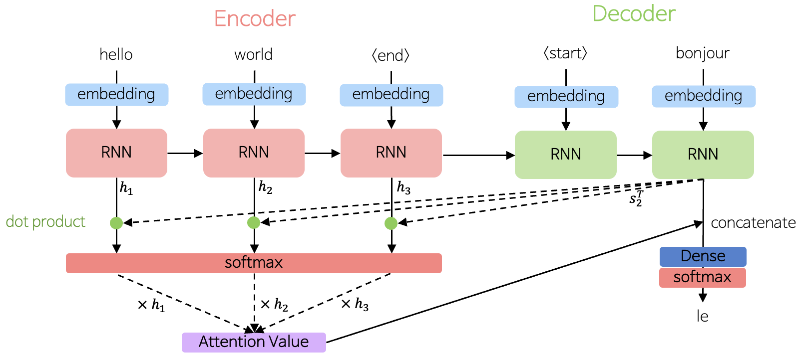 - ex) “hello world”에서 “bonjour le monde”로 번역하는 과정