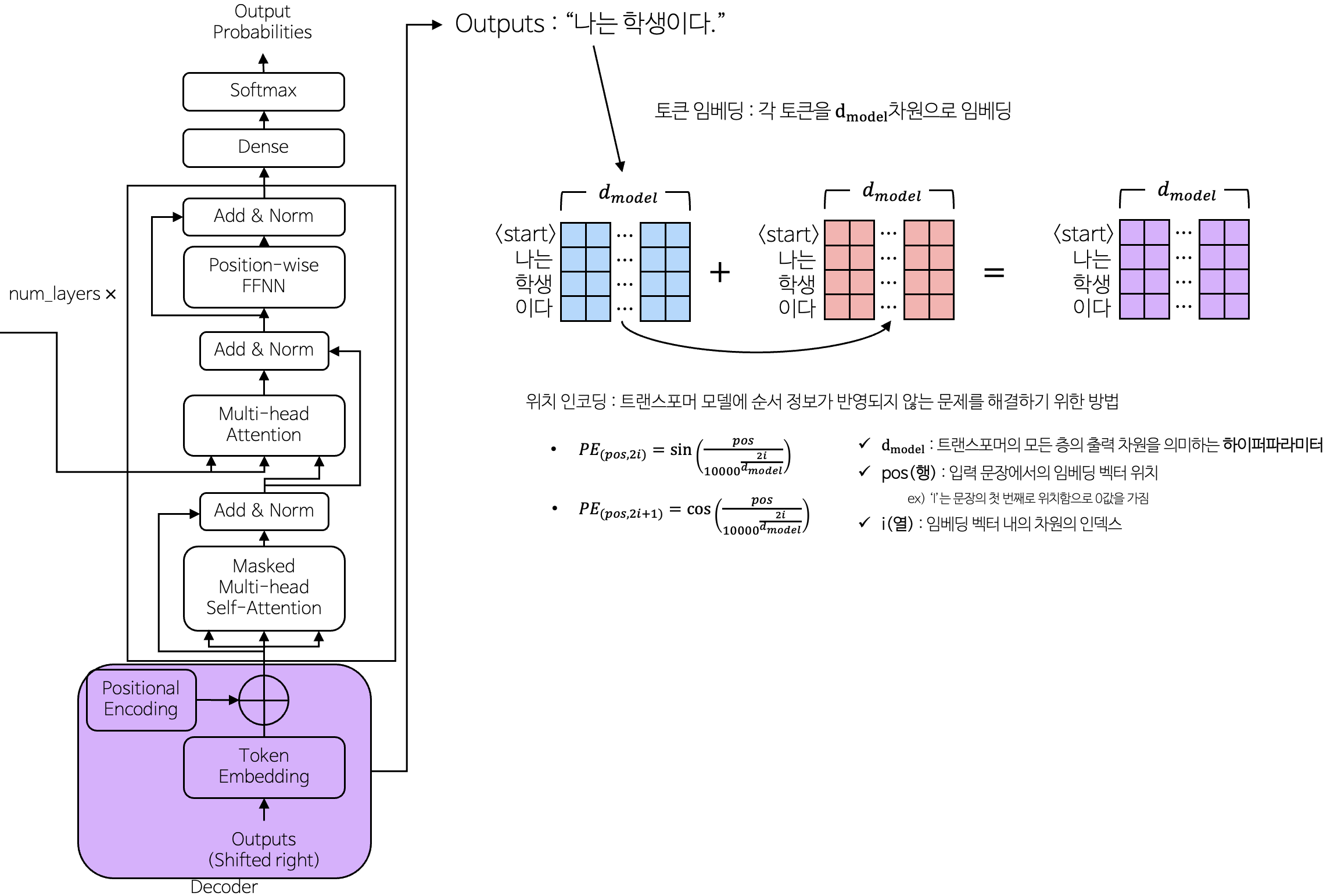 - <start> : 문장의 시작 혹은 번역의 시작을 알리는 토큰