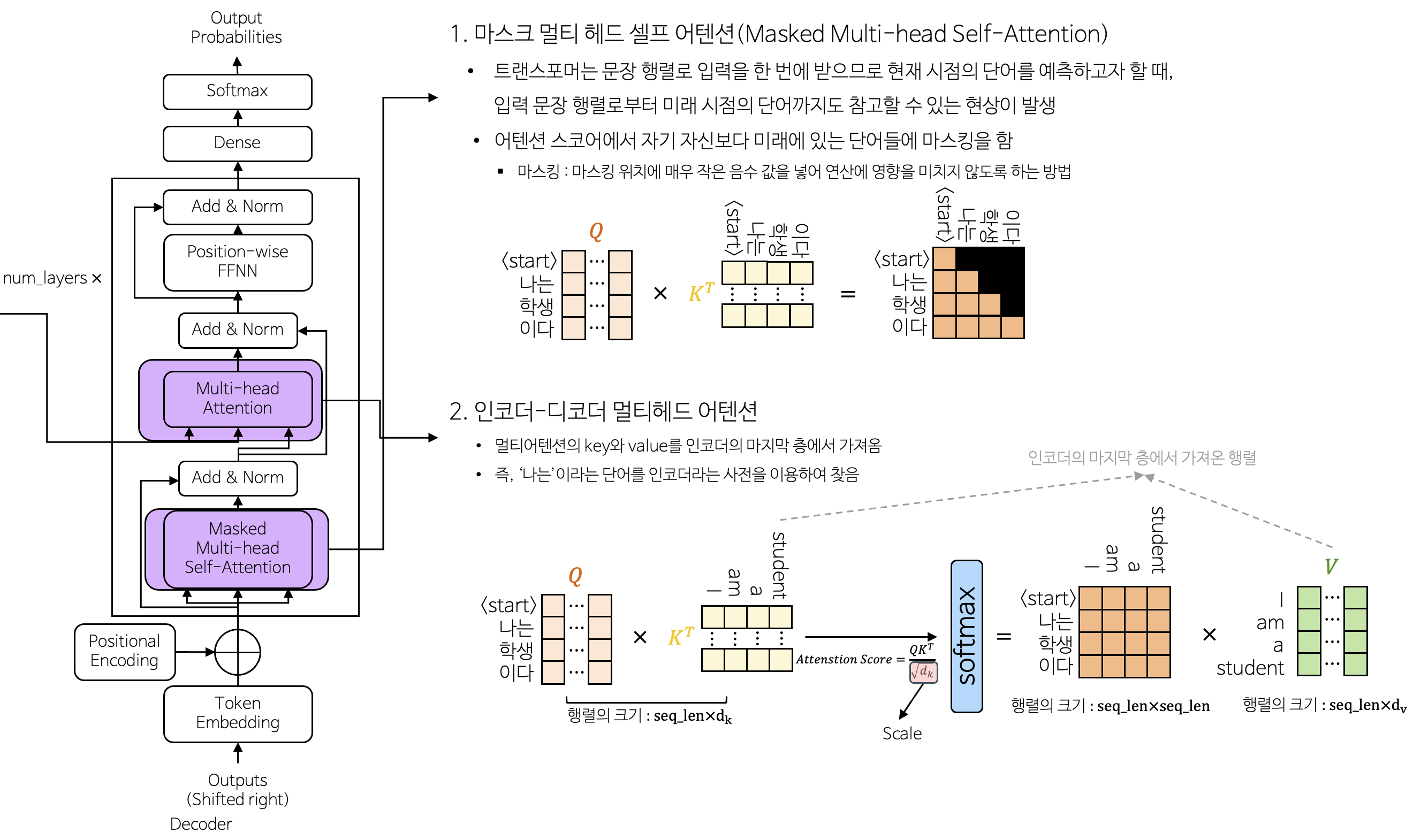 3-2-2. 마스크 멀티 헤드 어텐션 & 인코더-디코더 멀티 헤드 어텐션